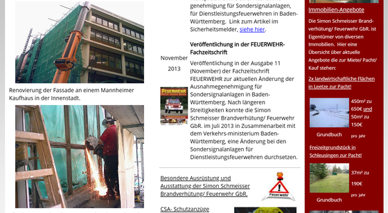 Bild (Screenshot) aus den Anfängen, als der Immobilienbesitz noch über die Schmeisser Brandverhütung/ Feuerwehr GbR. verwaltet wurde und das alte Logo.